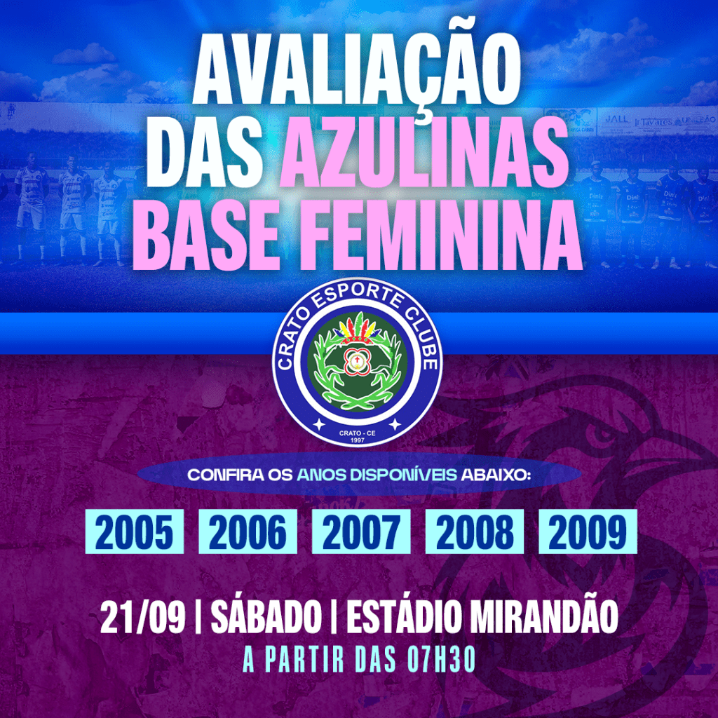 No dia 21 de setembro, também às 7:30h, será a vez das atletas do sexo feminino mostrarem seu talento na seletiva realizada pelo Crato Esporte Clube. Em um momento em que o futebol feminino ganha cada vez mais destaque e respeito, a iniciativa do Crato reflete um compromisso com a igualdade de oportunidades no esporte.