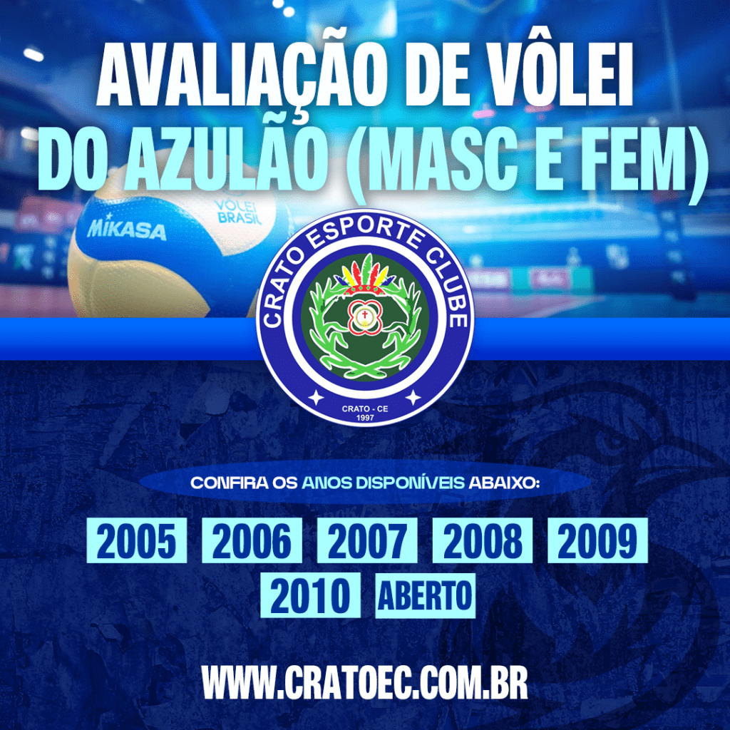 O Crato Esporte Clube também abrirá seletivas para o time adulto de vôlei, além das avaliações para a base, que inclui jovens nascidos entre 2005 e 2010. O objetivo é fortalecer o time de vôlei do clube, proporcionando aos atletas da região a oportunidade de representar o Crato em competições estaduais e nacionais.